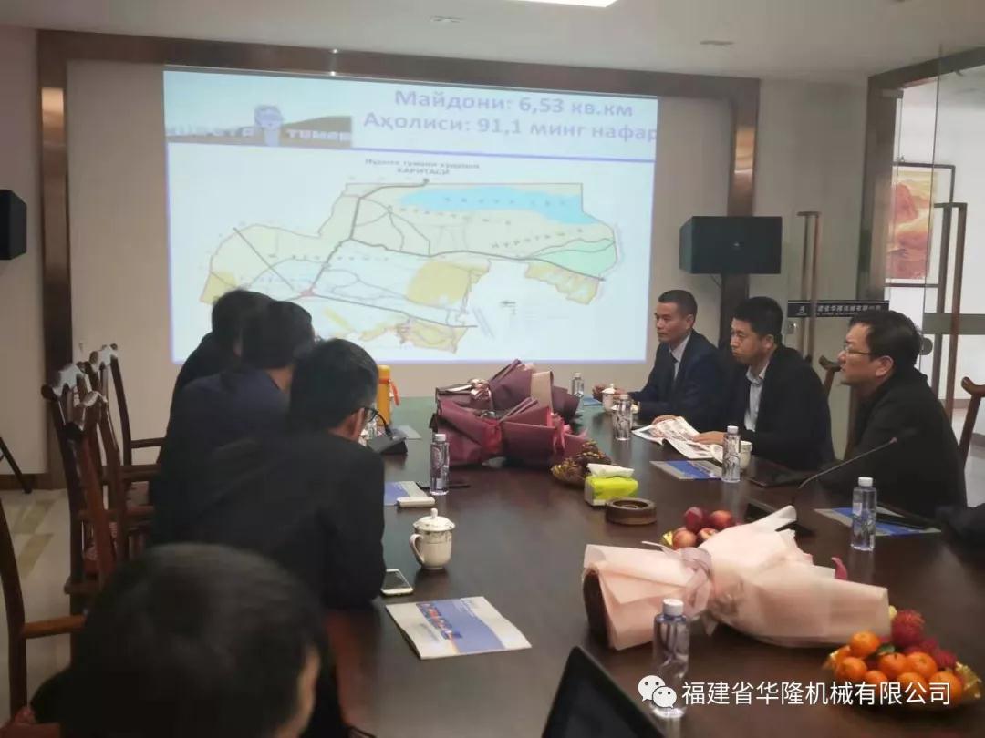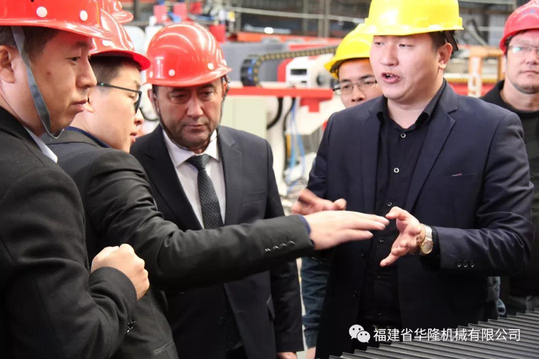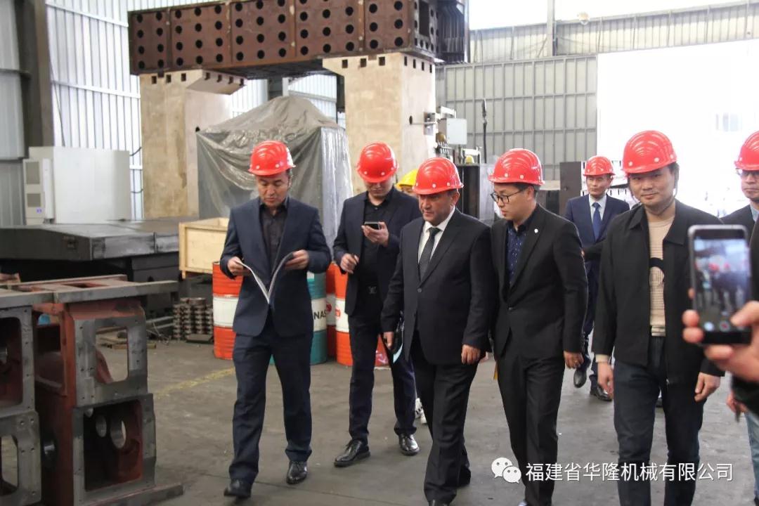 圖為烏茲別克斯坦納沃伊州市長代表團參觀華隆機械生產(chǎn)車間