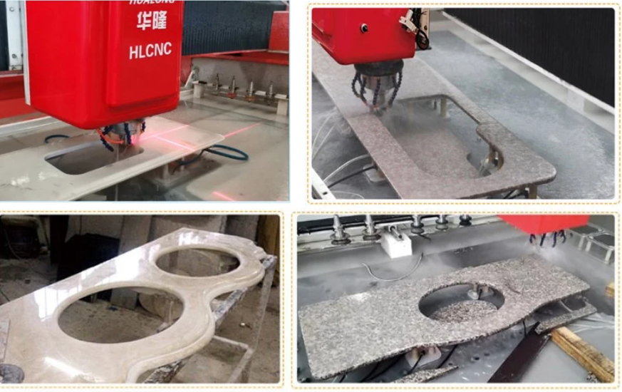 數控石材加工中心 : 是一個CNC銑削中心,設計用于輪廓加工、切削和車削,具有三個插補軸,為用戶提供了多種復雜加工操作的可能性。適用于加工各種石材臺面,如廚房臺面、浴室臺面、櫥柜臺面、吧臺、桌子、窗臺、門套等。浮雕像石頭背景墻浮雕,歐式包邊等也是可用的。