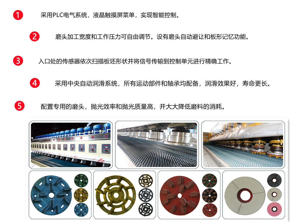 2)  Processing width and working pressure of grinding heads can be adjusted freely .